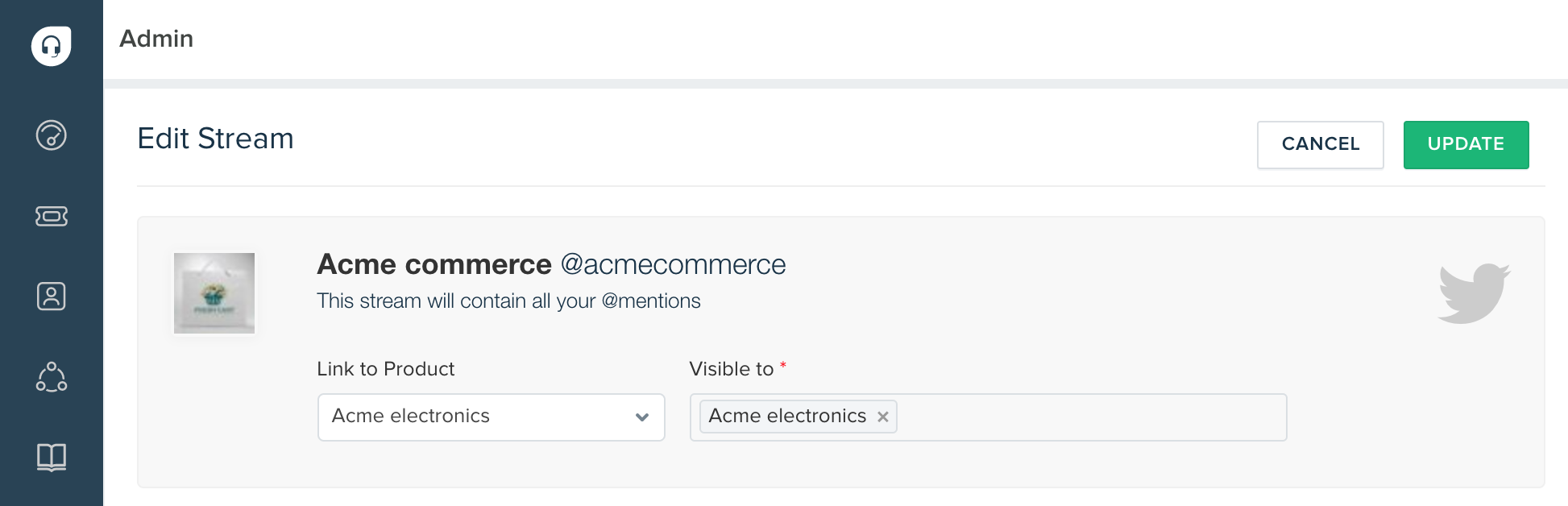 - All your Direct Messages will be converted to tickets automatically and you can choose to convert @mentions with certain keywords to tickets. If you support multiple products, you can link these tickets to a particular product using the dropdown.